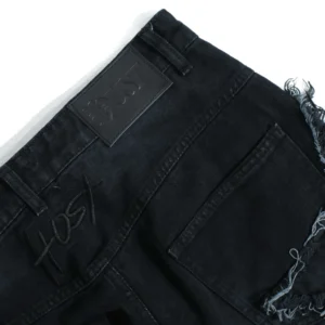 – Distressed unfinis pants